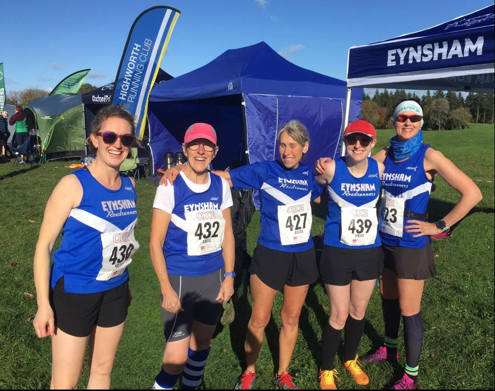 Hills, mud, trails, more hills. Together with a field of tents,( gazebo in our case..ERR history there ), a jumble of spikes, an aroma of Deep Heat there was also plenty of bon homie. The x country season had well and truly started! What was also present, unusually, were high temps with glorious sunshine to boot. With a backdrop of an autumnal Cornbury Park, the setting was stunning. What’s not to like ! ERR proved to be a smallish representation of the club for this first fixture, especially the ladies team with only 5 of us. Injuries abound it seems, but hopefully a few more will be able to join us for the next 4 events. A few newbies on the mens team boosted their numbers and I’m sure I heard them say they ‘enjoyed’ it ! The usual format ensued with the men charging off first to make it that bit muddier for us ladies and loud cheers from us as they all ascended the first hill with much puffing and panting as befitted the degree of difficulty it afforded. Note to self at this point… ‘ stay over on the furthest side so that I am more obscured to the viewing gallery’. Now that equal opportunities ensue, racing distances for x country is the same so ladies can rightly claim to have worked just as hard as the men. Hurrah ! And yes, I found it hard, really hard .Due to my own dalliance with injuries over the years I have been unable to compete in this series for many years and I was sharply reminded how tough an event it is. However, being part of a team makes all the difference and gives an extra edge to trying to do ones best. Attempting to hold form and not lose ground when trudging uphill, then letting rip and flying downhill is what I do best. Doesn’t make me the fastest in my age group out there,but I absolutely loved the challenge. Most notable on the day goes to Laura Leech for being 3rd in her age category.. a splendid performance given the huge (pun intended), field out there. A big shout out also to every ERR giving it their all on the day to represent the club and to Tom and Jacky for organising us all. Now , time to sign off and get out there practising on ‘them thar hills’